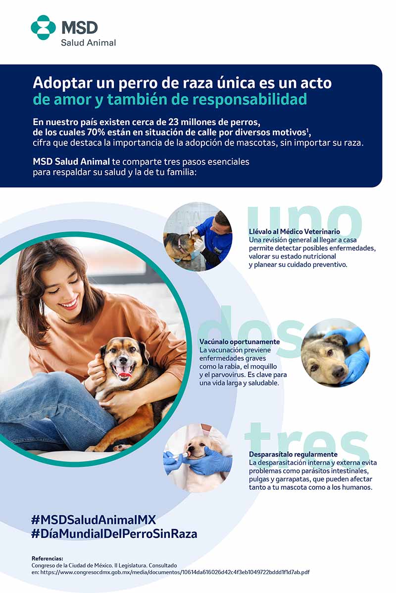 “Adoptar un perro de raza única no solo cambia su vida, también la de quienes lo reciben en su hogar”, comentó Alejandro Sánchez, Médico Veterinario y Gerente Técnico de la Unidad de Animales de Compañía de MSD Salud Animal México. “También se convierte en una gran responsabilidad y es fundamental garantizar su bienestar a través de visitas regulares con el Médico Veterinario, mantener un esquema de vacunación actualizado y una desparasitación adecuada. De esta forma, protegemos tanto a nuestras mascotas como a nuestras familias” agregó.
